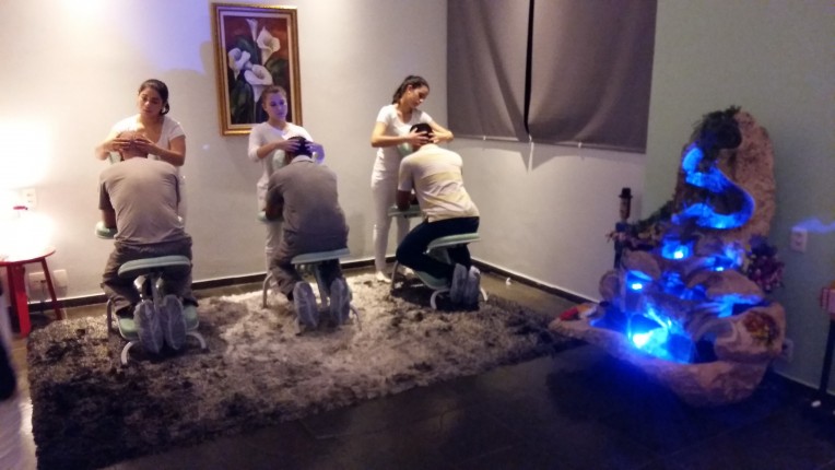 Além das palestras de conscientização, tivemos um momento de relaxamento com massagem terapêutica.